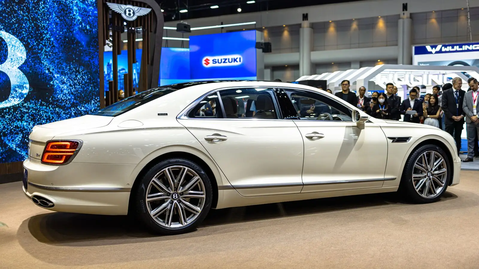 Размеры флагманского седана внушительны: длина 5316 мм, колёсная база — 3194 мм. Из-за размещения батареи багажник уменьшен до 346 литров. В топовой комплектации Mulliner автомобиль предлагает премиум-салон с кожей, электроприводом сидений, аудиосистемой Hi-Fi, круговым обзором, мультимедиа с Apple CarPlay и Android Auto, а также проекционным дисплеем.